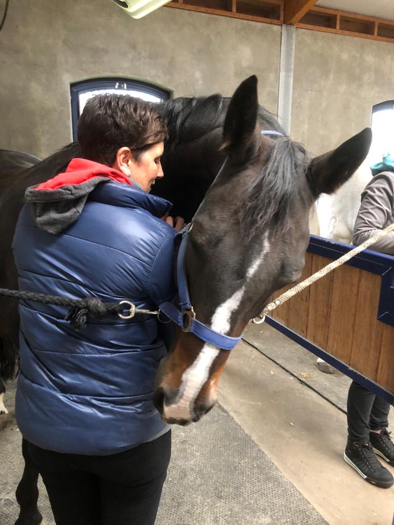 Met alle aandacht en rust, gebruik ik enkel mijn handen op het paard. Ik kijk, voel en zorg dat energie weer vrij in het lichaam stroomt. Op deze manier kan het paard loslaten en ontspannen.
